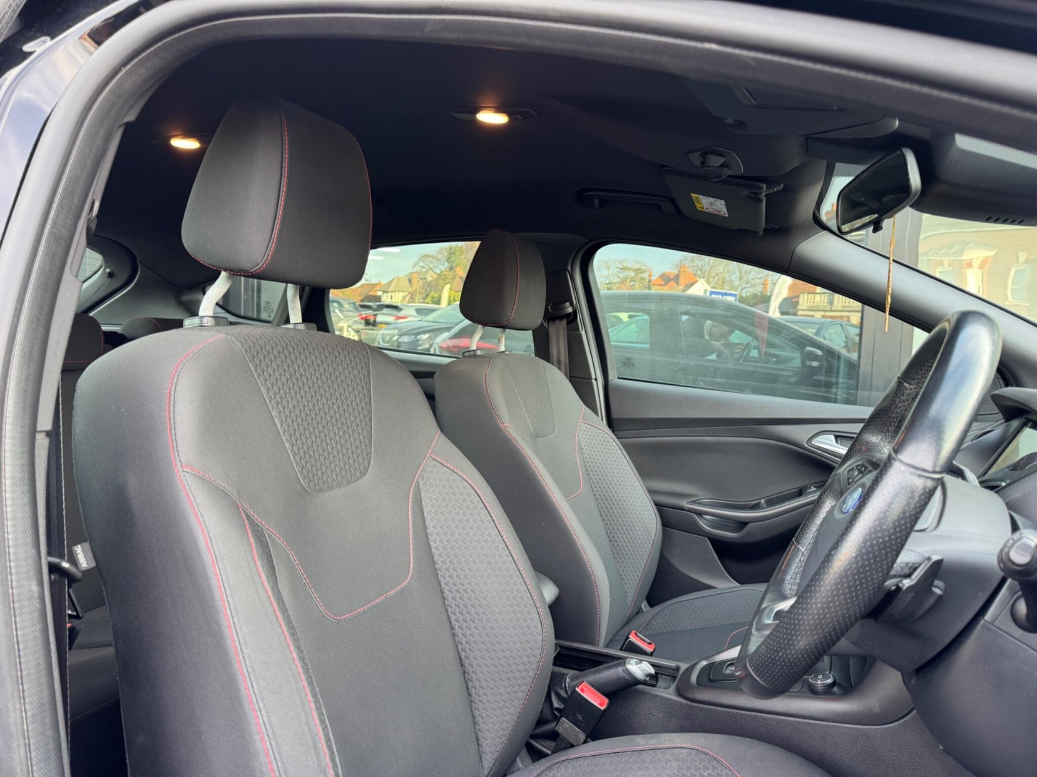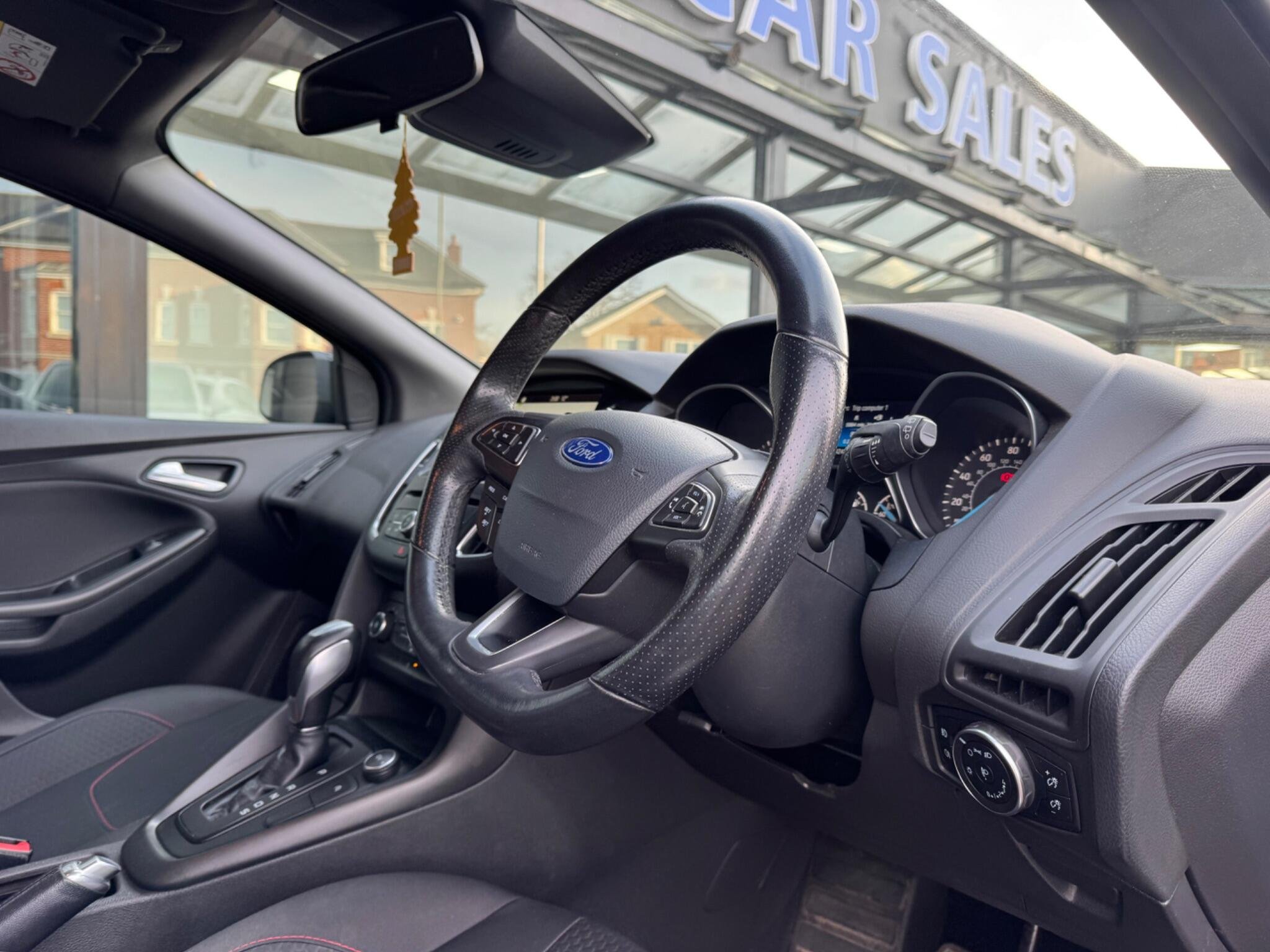 The ST-Line trim level offers a sporty feel, enhanced by features like paddle shifts for a more engaging driving experience. Practicality is also a strong point, with a large boot space perfect for luggage or shopping. This Focus is further equipped with a Driver Assistance Pack, featuring automatic headlights, and a Convenience Pack that includes front and rear parking sensors to aid manoeuvrability. Door edge protectors add an extra layer of care for the vehicle's paintwork, highlighting its well considered specification compared to other models.